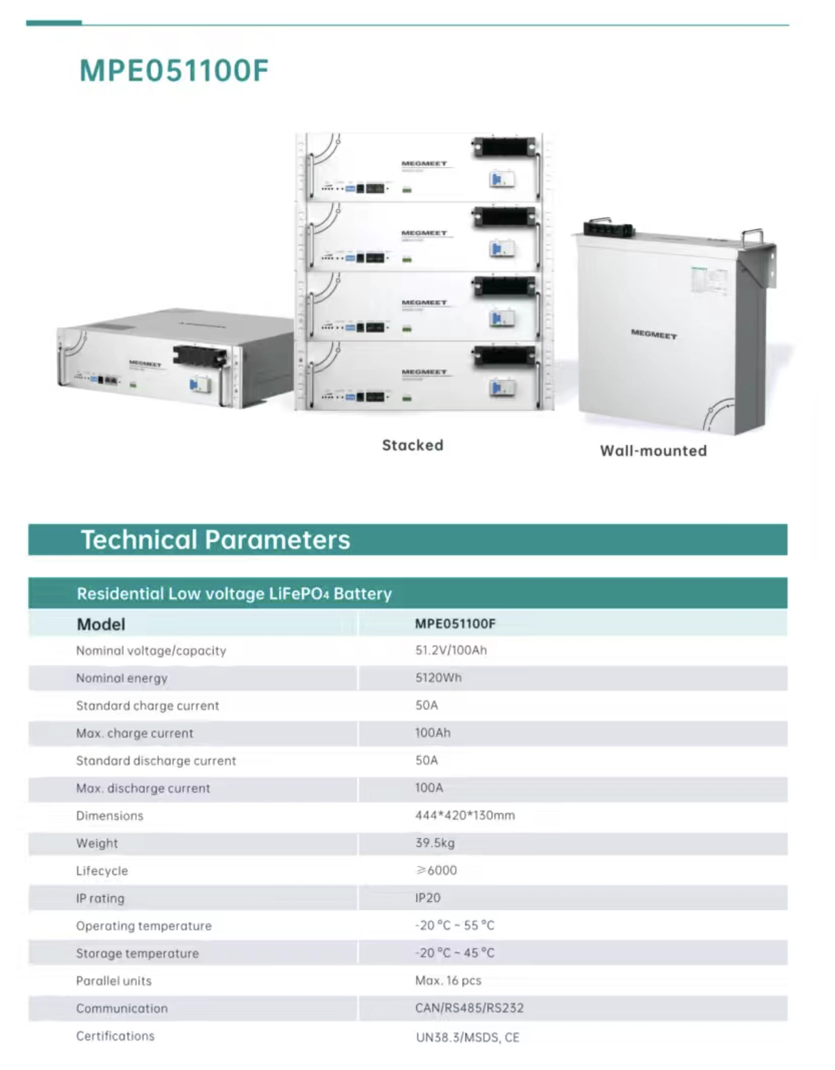 Intelligent BMS: megmeet 51.2V 100Ah Battery’s Battery Management System can manage and monitor cells information including voltage, current and temperature, protects it from overcharge, deep discharge, overloading, overheating and short circuit, help to extend lifetime.