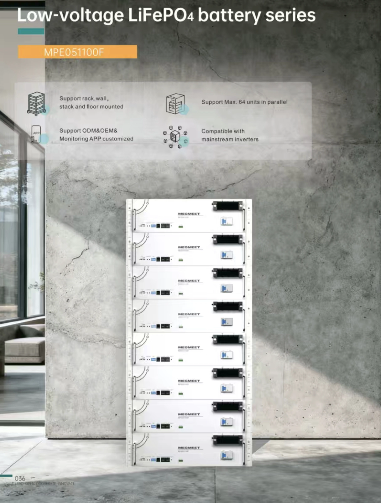 Grade A battery Cell: Megmeet 51.2V 100Ah LiFePO4 Battery Manufactured with automotive grade battery cells. High quality battery cells make LiFePO4 battery to provides 6000+deep cycles and up to 15- year life time.