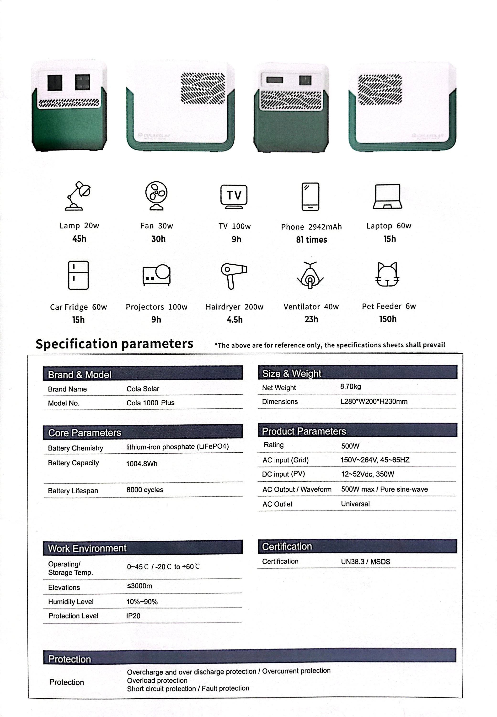 Whether you need to keep drinks cold in your convenience store, run promotional projectors in your retail space, or power cash registers during unexpected outages—Cola 1000 Plus delivers consistent, efficient power to keep your business running smoothly.